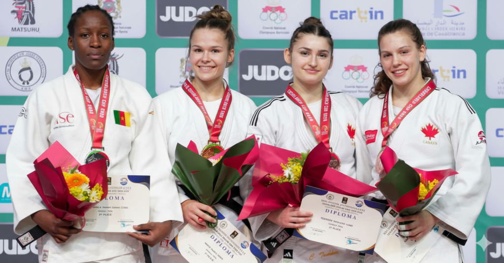 Dans la catégorie –63 kg dames, la judokate camerounaise a cédé en finale face à la Britannique Sophie Wood, au terme d’un parcours solide. Le podium, très international, a été complété par Catherine Toshkov (Canada) et Carla Van Zyl (Canada). Une hiérarchie qui illustre le niveau élevé de la compétition et donne du poids à l’argent camerounais.